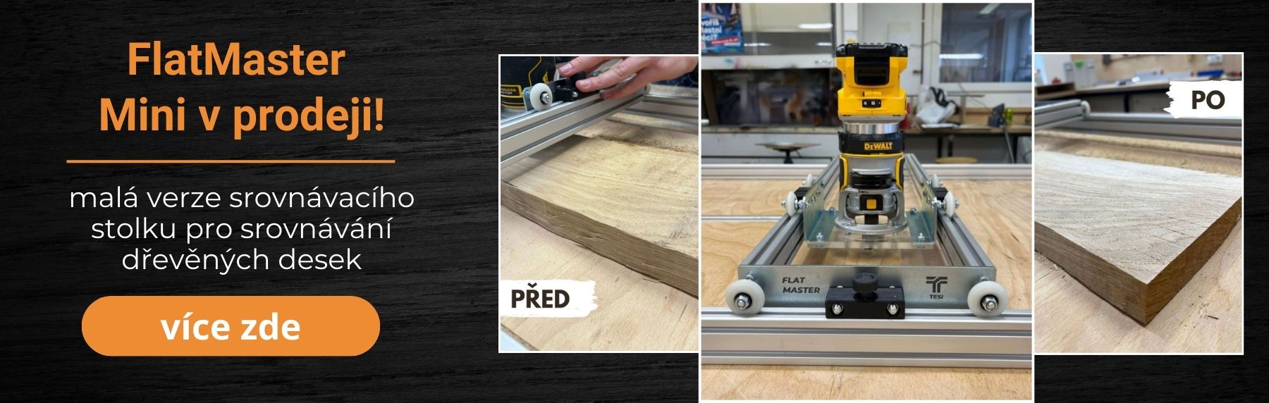 Rychlé info FlatMaster Mini - srovnávací frézovací stůl Počet hvězdiček je 5 z 5 Skladem 6 890 Kč ks Do košíku FlatMaster Mini je malá verze srovnávacího stolku pro srovnávání dřevěných desek. Pomocí ohraňovací frézky, srovnávacího nástroje a…